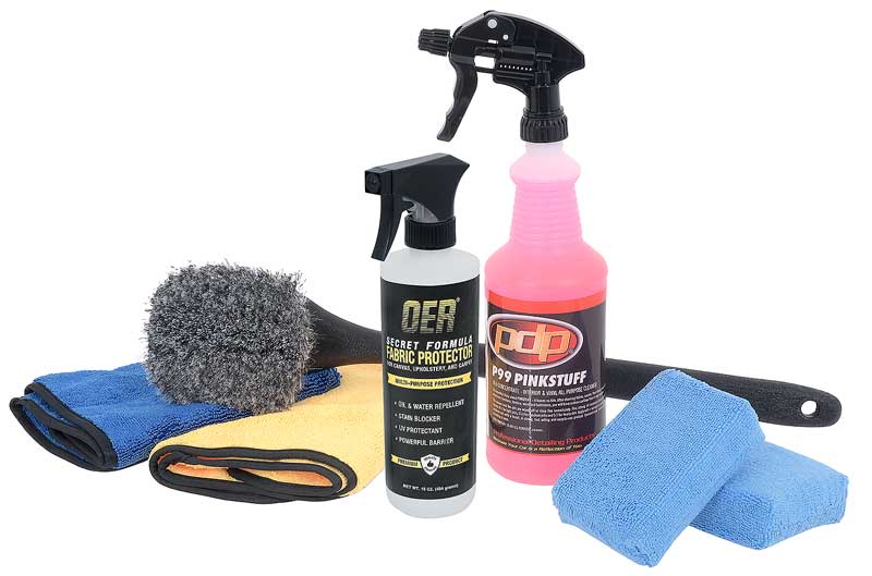 Next, the OER Secret Formula Protectant seals the canvas shielding your top from grease, tar, salt, tree sap and other debris. The amazing Canvas Top Protectant comes in a 16 oz. non-aerosol spray bottle and is an easy-to-use spray-on formula that seals the canvas material from moisture, causing water to bead on the surface to protect the material and substructure against any moisture damage.