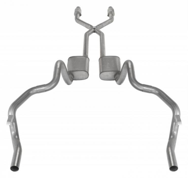 Fits 1975-81 F body GM. Adding optional EVT58 or EVT59 will allow them to exit out the back straighter.