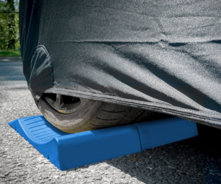 Race Ramps FlatStoppers are designed to help keep your tires from flat spotting during long periods of storage. Once the tires are set in the FlatStoppers (on a level surface), they will settle into the pad's concave depression. More of the bottom portion of the tire will be fully supported, thus dispersing the weight of the car more evenly onto the tire and helping to prevent any flattening. The Race Ramps FlatStoppers will not conduct heat or cold to your tires, despite changing floor temperatures. They also won't slide or damage your floor in any way. Choose the wheel stand width that best suits your tires.