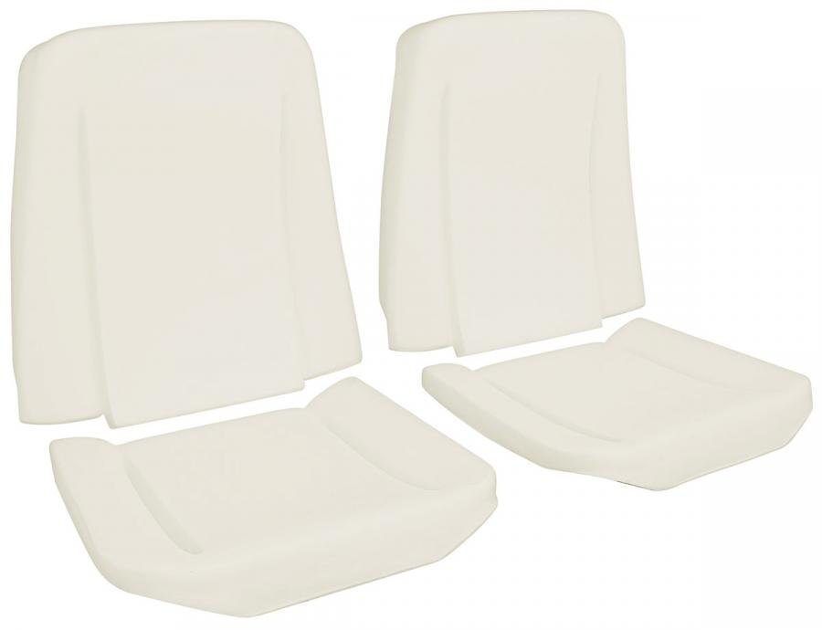 1966-1971 GM Car Bucket Seat Foam 2 Piece Set restores original seat shape and support for classic GM bucket seats. Designed to replace deteriorated or collapsed foam cores, these pre-formed high-density polyurethane pieces reestablish proper seating ergonomics, reduce driver fatigue, and protect upholstery from premature wear. Ideal for restorations and daily drivers alike, the set provides durable, reliable cushioning that matches factory contours for a correct fit and improved comfort with straightforward installation.