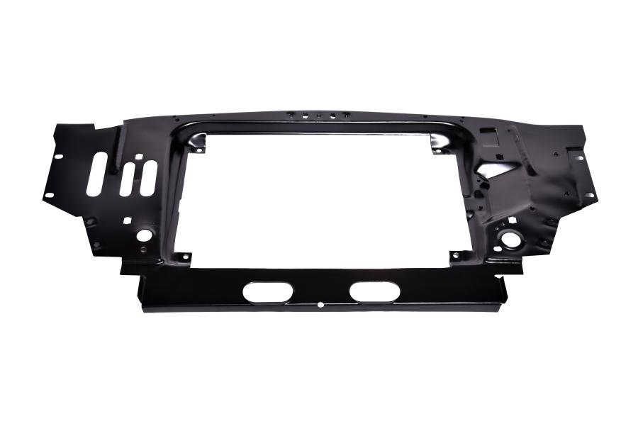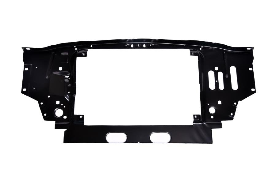 Instructions: Remove the damaged radiator support by drilling out spot welds and cutting along factory seams. Clean and prep surrounding metal for welding. Test fit the new support and align it with the fenders, radiator mounts, and hood latch area. Weld into place using factory-style joints. Grind smooth, apply seam sealer, and finish with primer and paint before reinstalling components.