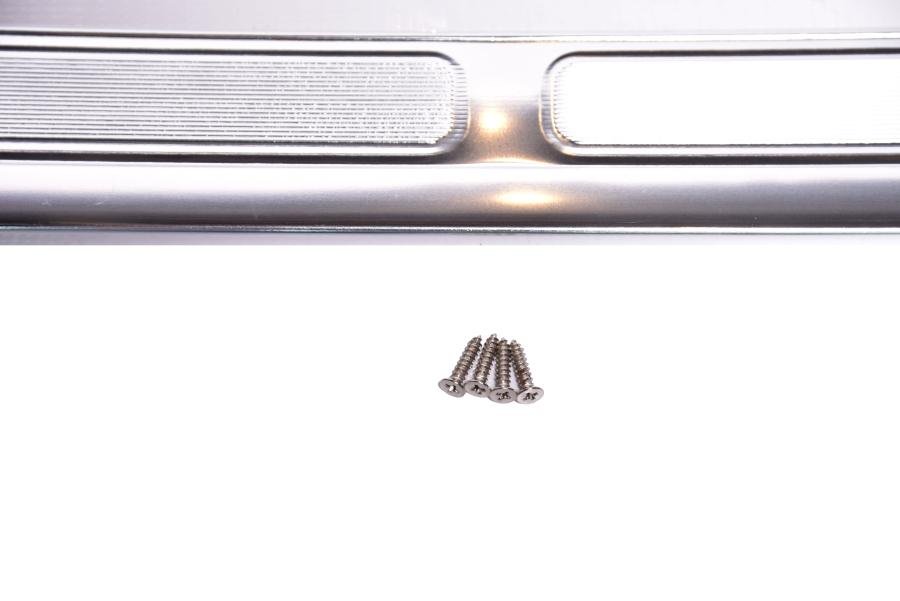 Instructions: Remove the old sill plate by unscrewing the factory mounting fasteners. Clean the door sill area to remove debris and rust. Position the new sill plate over the factory mounting holes and secure it in place using the provided or original screws. Adjust as needed before final tightening.
