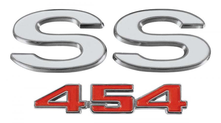 A great value! Get the "SS" emblems, coupled with our highest quality reproduction "454" badge in brilliant chrome with original baked-on enamel orange paint.