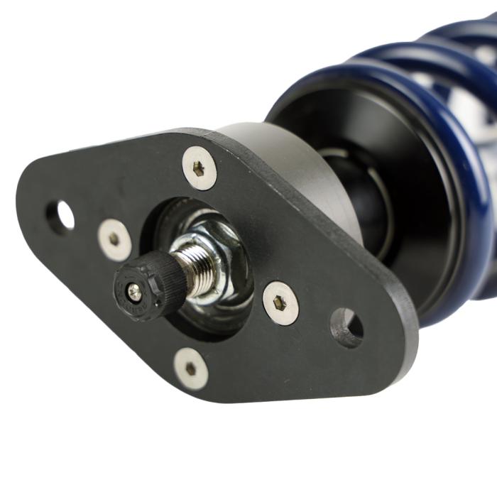 - Rubber isolated spherical bearing minimizes NVH noises commonly associated with coilovers