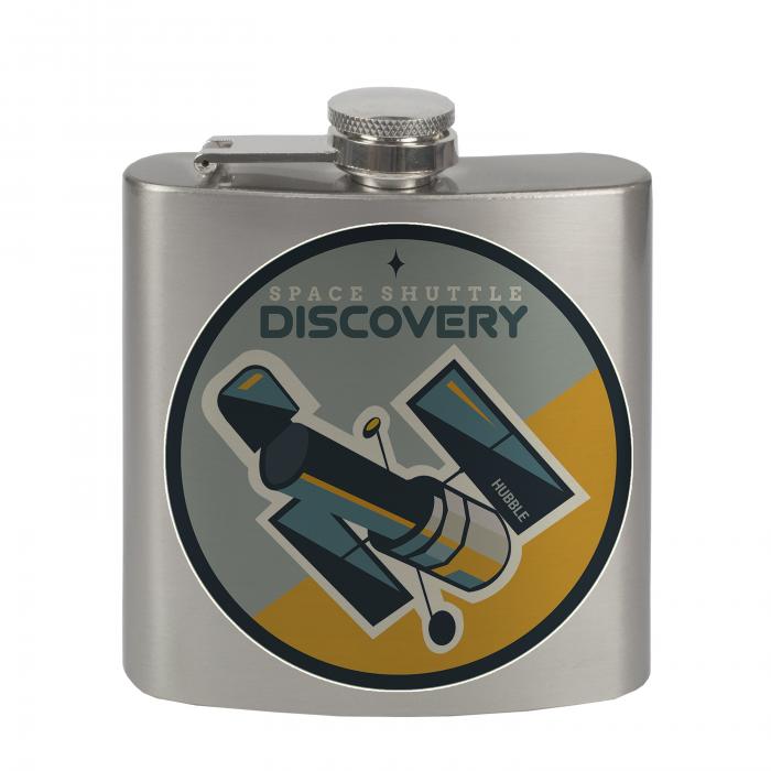 Stainless Steel Flask - 6 OZ - SPACE SHUTTLE DISCOVERY Hubble Telescope2 Blues/Gray/Yellow