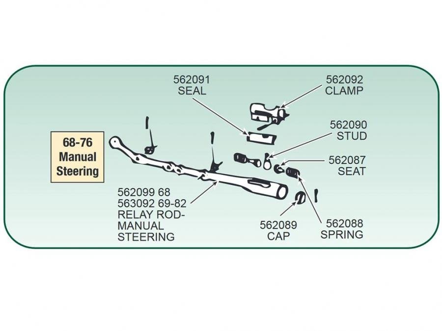 | 1 | 1009132 | 63-76 Manual Steering Relay Rod Ball Stud Seal Clamp - w/o PS |