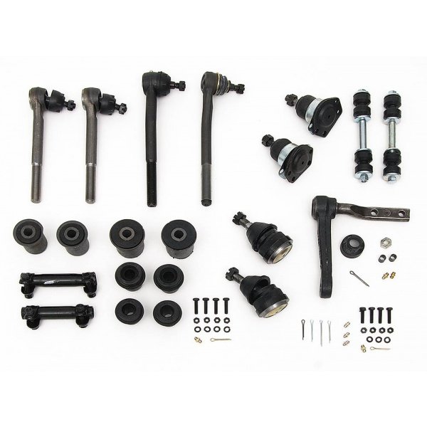 Replacement Suspension Hardware Basic Kit Includes: Four Ball Joints, Eight Bushings, Two Tie Rod Ends & Sway Bar Link Kit