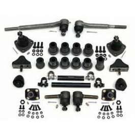Replacement Kit Fits All Cars With Original Power Steering Completely rebuild your tired front suspension and steering with one of our complete rebuild kits. These can be installed at home with simple hand tools, a floor jack & a coil spring compressor. Kit Includes: Upper & Lower Control Arm Bushings Upper & Lower Control Arm Bumpers Inner & Outer Tie Rods Tie Rod Sleeves Upper & Lower Ball Joints All Installation Hardware