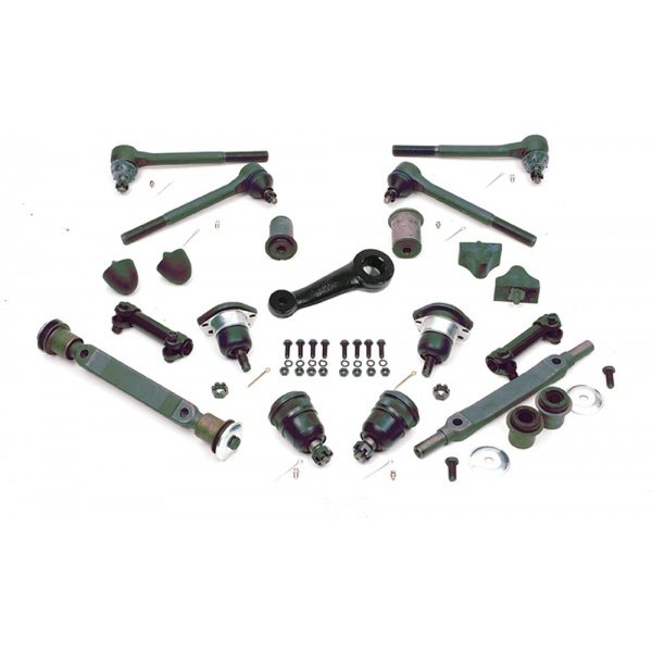 Replacement Kit Includes Original Rubber Components And Upgraded Design Where Applicable Kit Includes: 2 Upper Ball Joints 2 Lower Ball Joints 2 Outer Tie Rods 2 Inner Tie Rods 2 Adjusting Sleeves, 2 Upper Control Arm Bumpers 2 Lower Control Arm Bumpers 4 Upper C ontrol Arm Bushings 2 Upper Control Arm Shafts 4 Lower Control Arm Bushings 1 Pitman Arm Must Have Lower Round Control Arm Bushings Does Not Include Sway Bar Hardware, Idler Arm Or Center Link This El Camino replacement front end suspension kit has been manufactured to meet or exceed factory specifications and performance. You will find the fit and function will work perfectly for your vehicle. You will also be pleased to know that the El Camino Store has sourced this front end suspension kit among other possible parts as the best choice for your repair or restoration project.