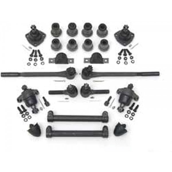 Replaces Worn Suspension Components Kit Includes Original Rubber Components And Upgraded Design Where Applicable 2 Upper Ball Joints 2 Lower Ball Joints 2 Outer Tie Rods 2 Inner Tie Rods 2 Adjusting Sleeves 2 Upper Control Arm Bumpers 2 Lower Control Arm Bumpers 4 Upper Control Arm Bushings 4 Lower Control Arm Bushings Does Not Include Sway Bar Hardware, Idler Arm Or Center Link This El Camino replacement front end suspension kit has been manufactured to meet or exceed factory specifications and performance. You will find the fit and function will work perfectly for your vehicle. You will also be pleased to know that the El Camino Store has sourced this front end suspension kit among other possible parts as the best choice for your repair or restoration project.