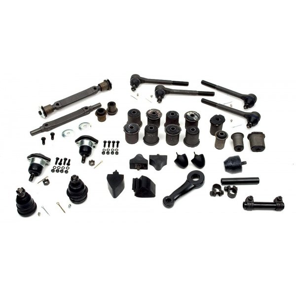 Replaces Worn Suspension Components Kit Includes Original Rubber Components And Upgraded Design Where Applicable Kit Includes: 2 Upper Ball Joints 2 Lower Ball Joints 2 Outer Tie Rods 2 Inner Tie Rods 2 Adjusting Sleeves 2 Front Upper Control Arm Bumpers 2 Front Lower Control Arm Bumpers 4 Front Upper Control Arm Bushings 2 Upper Control Arm Shafts 4 Front Lower Control Arm Bushings 1 Pitman Arm 8 Rear Control Arm Bushings (Upper & Lowers) 2 Rear End Bumpers 1 Pinion Bumper (72 only), Must Have Lower Large Oval Front Control Arm Bushings Does Not Include Sway Bar Hardware, Idler Arm Or Center Link This El Camino replacement front and rear suspension kit has been manufactured to meet or exceed factory specifications and performance. You will find the fit and function will work perfectly for your vehicle. You will also be pleased to know that the El Camino Store has sourced this front and rear suspension kit among other possible parts as the best choice for your repair or restoration project