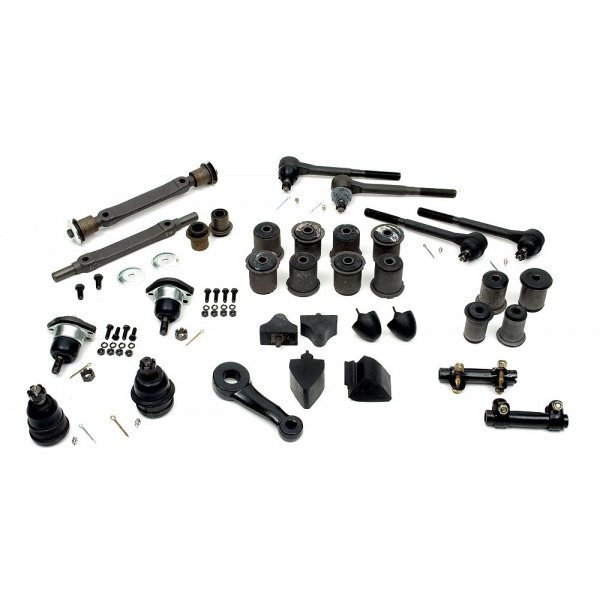 Replaces Worn Suspension Components Kit Includes Original Rubber Components And Upgraded Design Where Applicable Kit Includes: 2 Upper Ball Joints 2 Lower Ball Joints 2 Outer Tie Rods 2 Inner Tie Rods 2 Adjusting Sleeves 2 Front Upper Control Arm Bumpers 2 Front Lower Control Arm Bumpers 4 Front Upper Control Arm Bushings 2 Upper Control Arm Shafts 4 Front Lower Control Arm Bushings 1 Pitman Arm 8 Rear Control Arm Bushings (Upper & Lowers) 2 Rear End Bumpers Must Have Round Lower Front Control Arm Bushings Does Not Include Sway Bar Hardware, Idler Arm Or Center Link This El Camino replacement front and rear suspension kit has been manufactured to meet or exceed factory specifications and performance. You will find the fit and function will work perfectly for your vehicle. You will also be pleased to know that the El Camino Store has sourced this front and rear suspension kit among other possible parts as the best choice for your repair or restoration project.