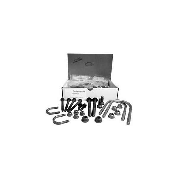 These master chassis kits contain the fasteners you need to properly re-assemble your cars chassis in one complete kit. Typical kits contain OEM correct fasteners to attach the accelerator bellcrank, rear axle retainers/rear brake backing plates, front brake plates, brake booster, brake cables, brake calipers, brake drums, brake hoses, spring perches, control arms, front crossmember, axle housing, differential carrier, driveshaft, engine mounts, gas cap, gas tank, filler neck, idler arm, leaf spring front eye, master cylinder, parking brake control, pitman arm, proportioning valve, rag joint, front shocks, shock brackets, steering gear, steering linkage, strut rods, suspension bumpers, sway bar insulator brackets, transmission crossmember, transmission insulator, and wheel cylinders. lt;br>