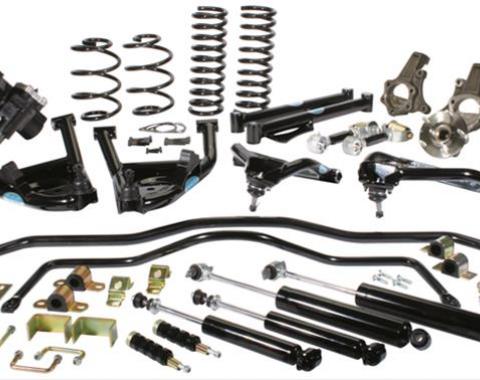 1967 Chevy Camaro, Front Double Adjustable Coil Overs, Rear Double Adjustable Shocks, Front & Rear Sway Bars, 2" Drop Leaf Springs & Adjustable Shocks, 4 Wheel Big Brakes with Master & Valve ComboThe Pro-Touring Kit - Stage 4…