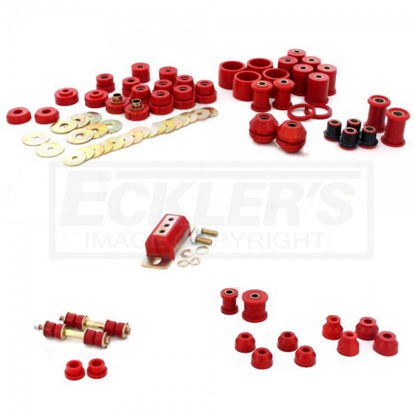 This High Performance Polyurethane Bushing Kit for your 1965, 1966, 1967, 1968, 1969 or 1970 Chevrolet Impala Convertible comes complete with front and rear control arm bushings, rear track bar bushings, front end links and front strut rod bushings. Also included are body and transmission mount bushings and tie rod and ball joint boots.