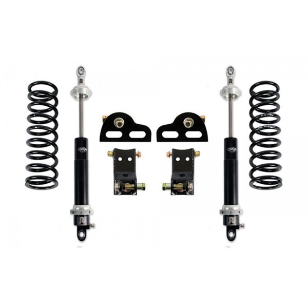 The Detroit Speed 1982, 1983, 1984, 1985, 1986, 1987, 1988, 1989, 1990, 1991, 1992 Camaro Coilover Conversion Kit allows the latest in coilover spring/shock technology to be bolted on bringing your cars handling and ride into the 21st century with our "Detroit Tuned" valving. The base coilover package offers extensive ride height adjustability and is optimized around a 2" drop from stock height. Installation requires only minor drilling on the existing axle bracket. Our optional single or double adjustable coilovers offer adjustability with multiple settings for both compression and rebound. The ultimate package is our monotube remote reservoir coilover set which offers separate fluid canisters for optimum adjustability and improved heat dissipation.