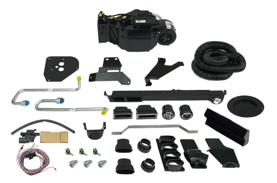 **Evaporator kit includes the evaporator unit and mounting brackets, louvers (where required), duct hose, wiring harness, new rotary controls with OEM-style aluminum fluted knobs, hardware and installation instructions.