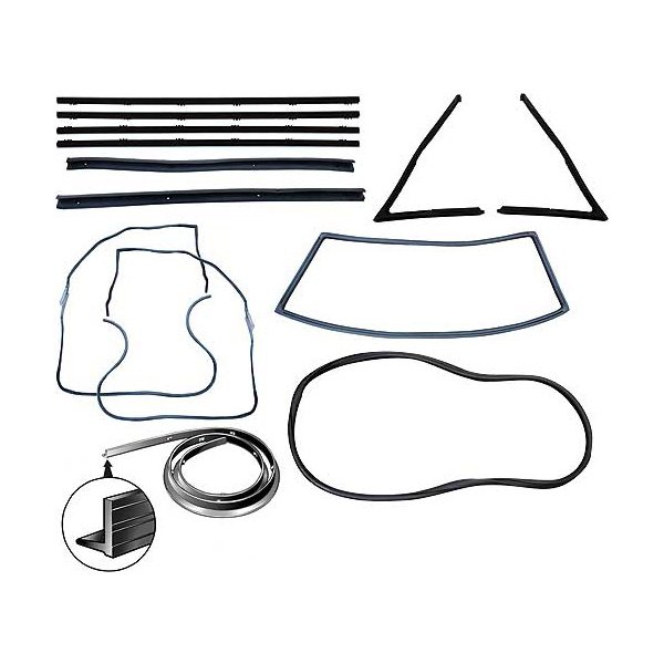 Save time, money and hassle with our new weatherstrip kits. Replace your worn out, deteriorated weatherstripping with our brand new quality reproduction weatherstrip kits. All Dearborn Classics weatherstrip kits have been discounted off the regular retail price to save you money. Contents of kit vary depending on model and body style of vehicle, please verify contents when ordering. Ranchero kits include 2 door seals, 2 roof rail seals(68/79 models), 1 windshield seal,(57/65), 4 beltline windowfelts, 2 window chanel runs (60/67), 2 division bars (60/65) 1 rear window seal, 1 hood to cowl seal, 1 rear bumper to body seal(57/65), 2 vent window verticle seals (57/65), 2 vent window seals (57/65)