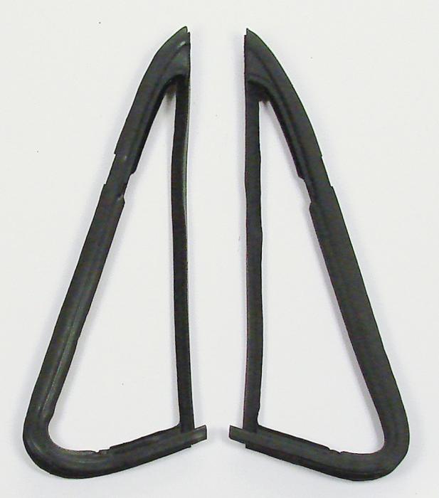 A direct-fit one-piece left and right vent glass weatherstrip seal kit designed to restore a watertight, vibration-free seal for vent (quarter) windows on classic air-cooled Volkswagen vehicles. The one-piece design replaces aged, cracked seals to improve window alignment, stop wind and water intrusion, and restore factory appearance. Constructed from durable, weather-resistant rubber, these seals provide long-lasting resilience against UV, ozone, and temperature cycling for reliable protection and ease of installation during restoration or routine maintenance.