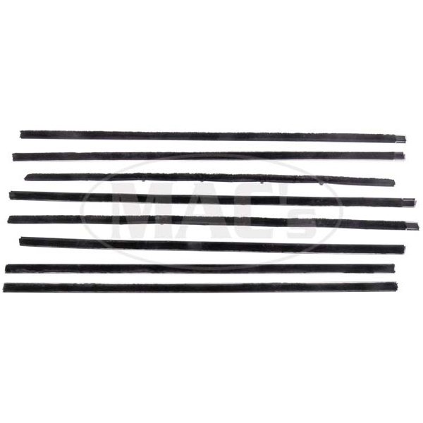 This is the belt line weatherstripping that fits in the top edge of your door. All windowfelt kits include outer door piece as well as the inner pieces that attach to the top of your door panel. Manufactured to fit and appear like the original. Sometimes called window fuzzies. All kits include correct extruded design, original mounting clips and hardware as required. All Dearborn Classics windowfelt kits are made in the usa!