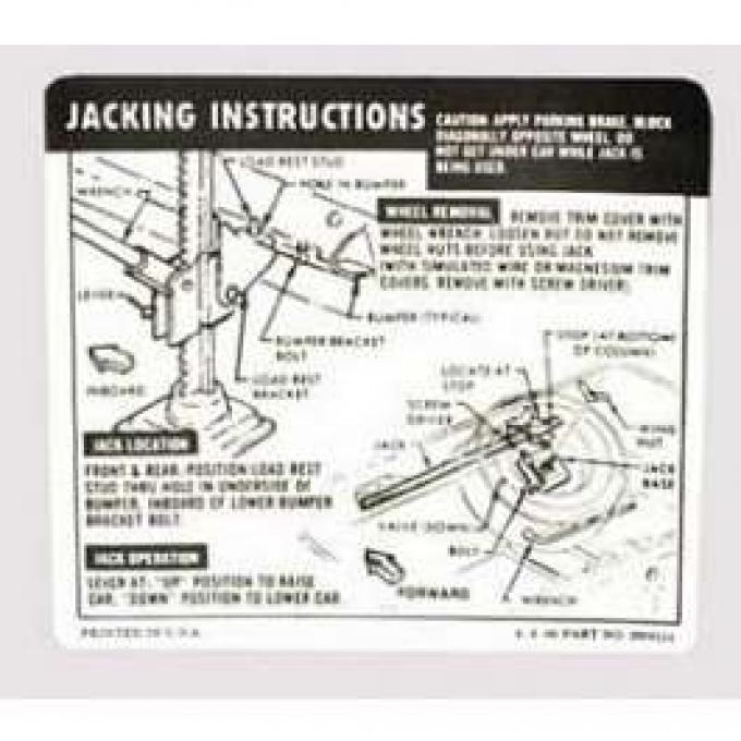 Reproduction Of Original This Camaro reproduction jacking instruction decal has been manufactured to original factory specifications using today's modern manufacturing techniques. You will find the fit, finish and function will work superbly for your restoration.