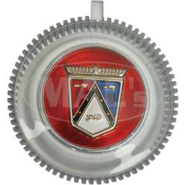 To keep Emblem From Rattling Be Sure To Order Foam Insulator Gasket Part Number 63-30119 Dearborn classics has brand new 1963/1965 Falcon wire wheel spinner caps. Made of die cast metal and triple chrome plated. Emblem sold separately. Emblem features correct red, blue and gold painted design. Order in the set and save. These hard to find goodies are a Dearborn Classics exclusive. These are the red plastic inserts that were used in all 14 and 15 inch wire wheel covers for Rancheros and Falcons.