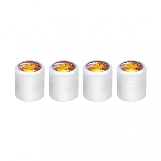 United Pacific Chrome Round Valve Caps w/ Amber Diamond (4 Pack) 70064