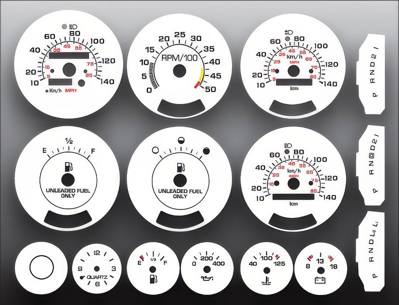 - Shift Indicator gauge - Small clock gauge - Temperature gauge - Printed install instructions |