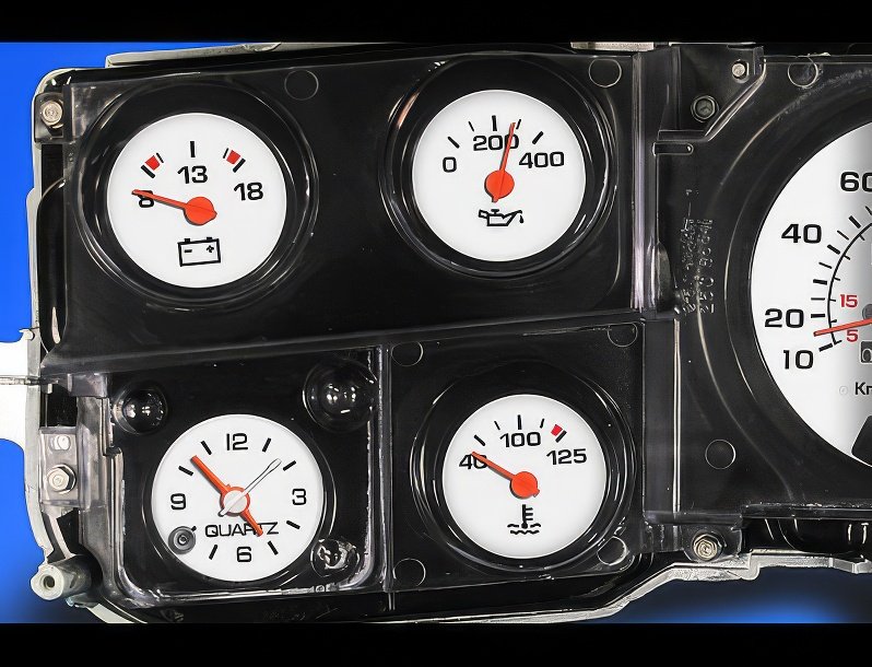 - 140 KM/H speedometer - 5000 RPM tachometer - Blank gauge - Fuel gauge - Oil temperature gauge |
