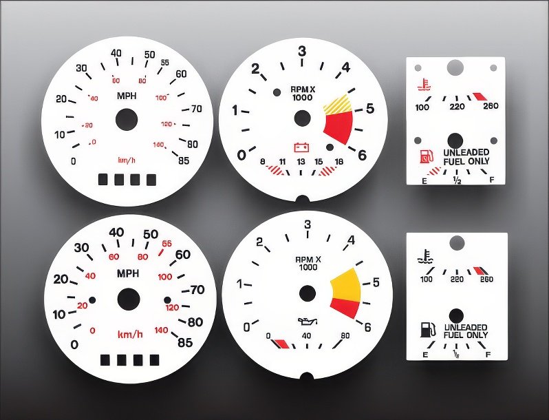 - 85 MPH speedometer - 6000 RPM tachometer - Fuel gauge - Temperature gauge - Printed install instructions |