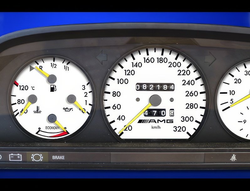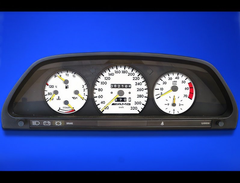 - 320 KM/H speedometer - 7000 RPM tachometer - Fuel gauge - Oil pressure gauge |