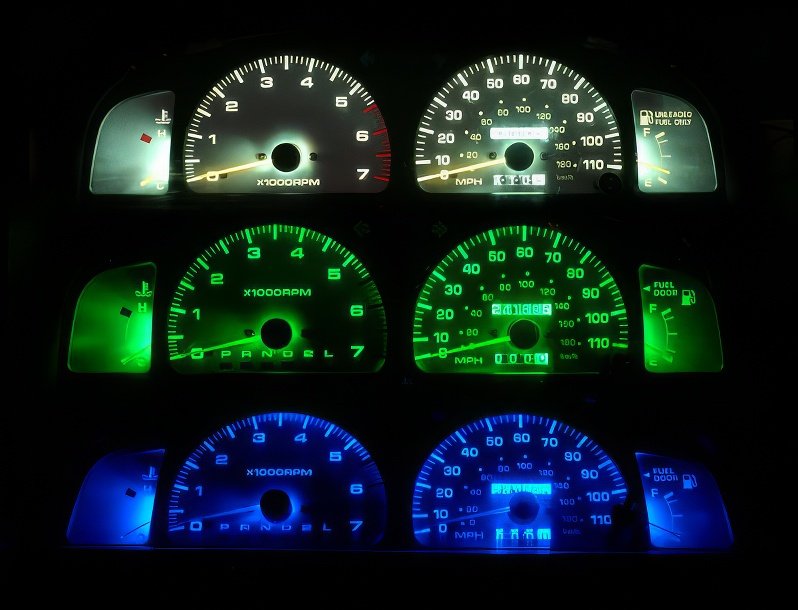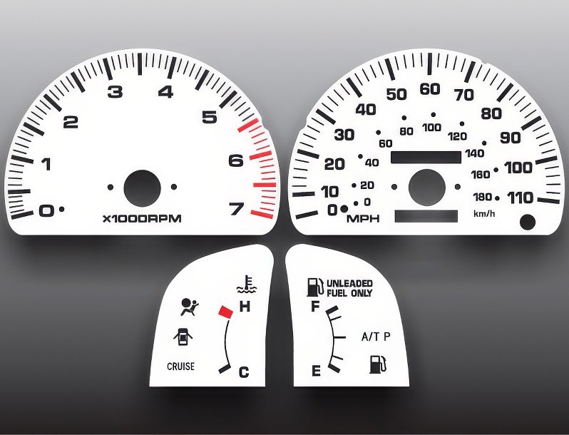 - 110 MPH speedometer - 7000 RPM tachometer - Fuel gauge - Temperature gauge - Printed install instructions |