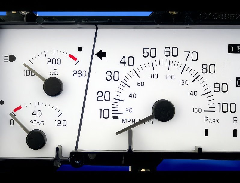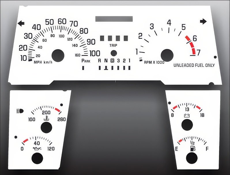 - 100 MPH speedometer - 7000 RPM tachometer - Fuel gauge - Oil pressure gauge |